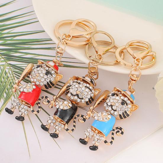 Eye-Catching Rhinestone And Enamel Detailing: The tiger's body is adorned with colorful enamel glaze in red, black, blue, and other hues, complemented by sparkling rhinestones. These elements create dazzling reflections under light, highlighting intricate pattern details and making the keychain a striking accessory.