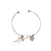 This exquisite bracelet showcases meticulous craftsmanship with a shiny, high-quality inlay that highlights its fine details. Featuring a charming combination of pendants—including a pink heart-shaped artificial gemstone, a white bead, and a metal bow—this piece exudes a romantic and playful vibe.