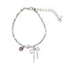 Charming Multi-Element Pendant Design: Adorned with multiple small pendants, including a pink heart-shaped artificial gemstone, a white bead, and a delicate metal bow, this bracelet exudes a romantic and playful vibe. Each pendant adds unique character, creating a whimsical yet sophisticated look.