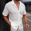 Summer New Fashion Versatile Men's Casual Striped Shirt Lapel Short-sleeved Tops