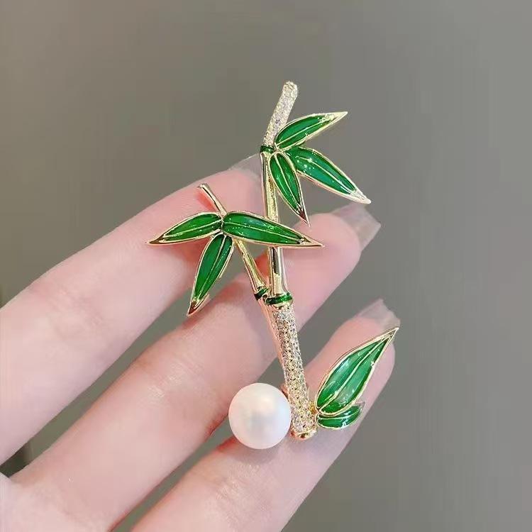 Elegant Chinese Bamboo and Pearl Brooch for Women - Stylish High-end Fashion Accessory
