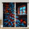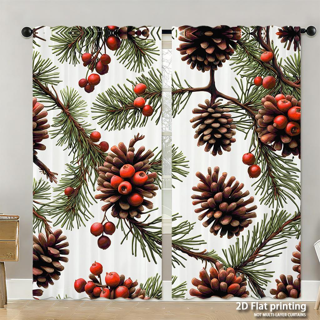 Piece Set High Definition Digital Printed Curtainschristmas Pinecones Redberries Greenbranches Nature Style Seamless Patter Curtains Made Of Polyester
