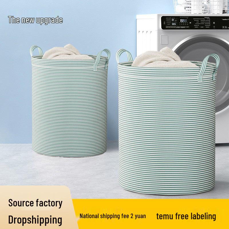 Foldable Bedroom Laundry Basket with Stripes - Clothes Hamper and Bathroom Storage Bin