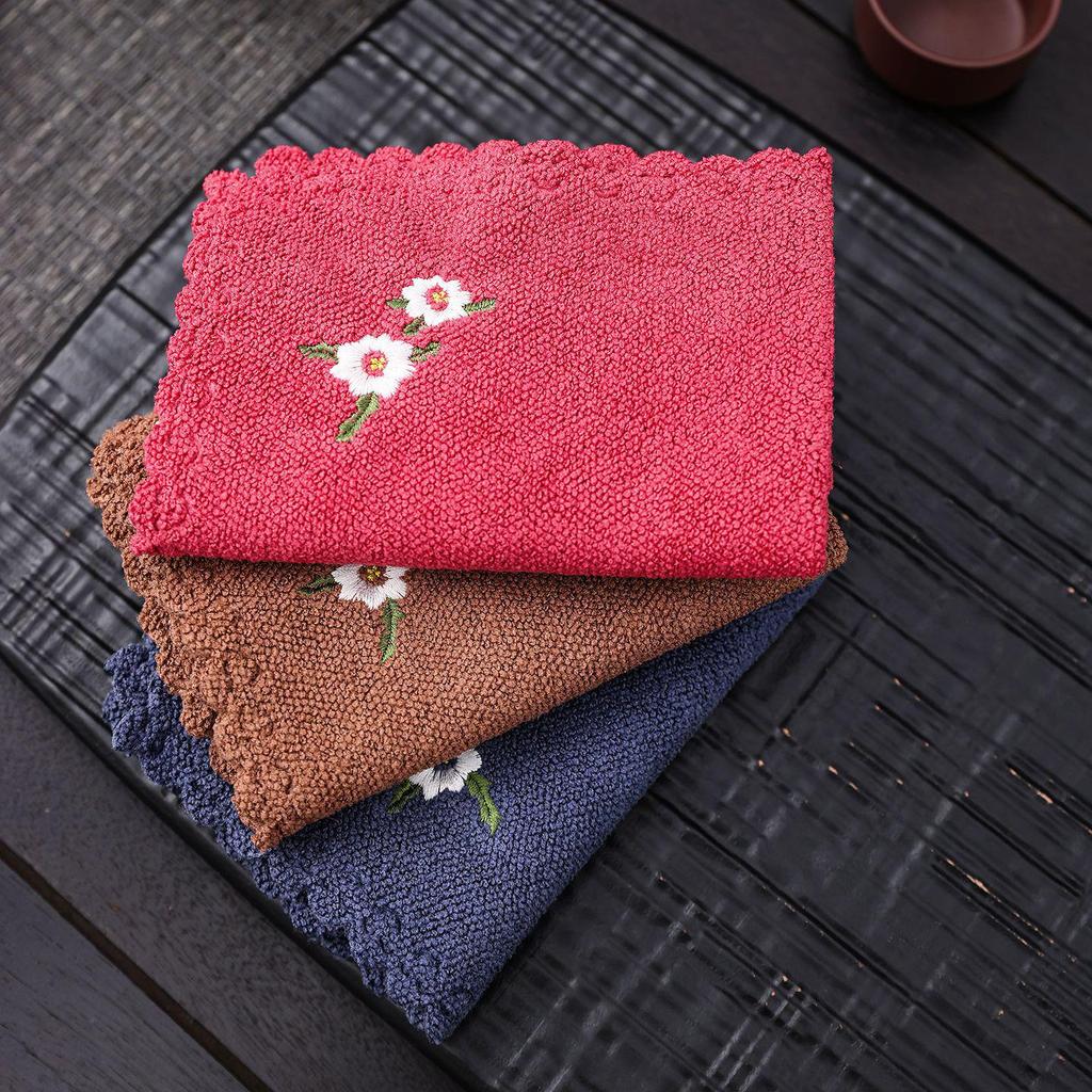 Japanese Tea Towels: Absorbent Cotton & Linen Rags, Embroidered Fabric, Thickened Cloth Pads, No Shedding