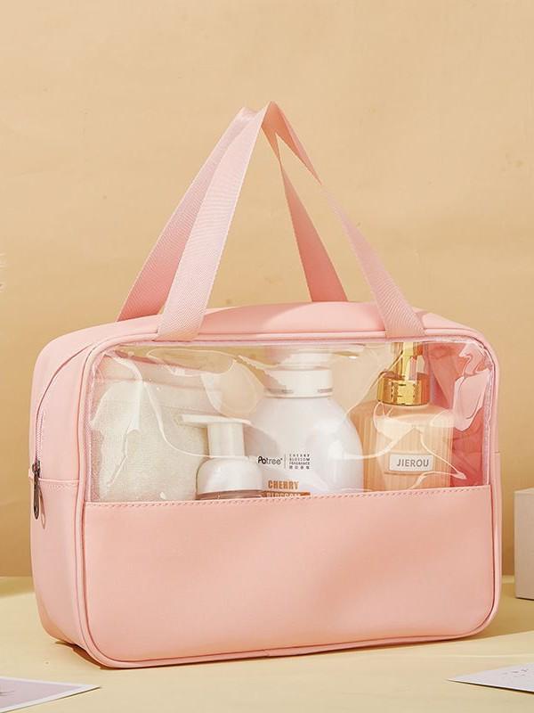 Large Capacity Waterproof PVC Patchwork Makeup Bag - Semi-Transparent Toiletry and Portable Travel Storage Bag