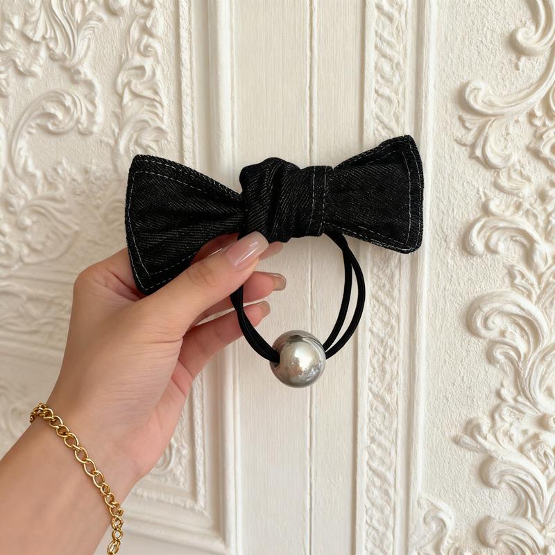 Korean Style Denim Bow High Elastic Hair Tie - Retro High-End Accessory