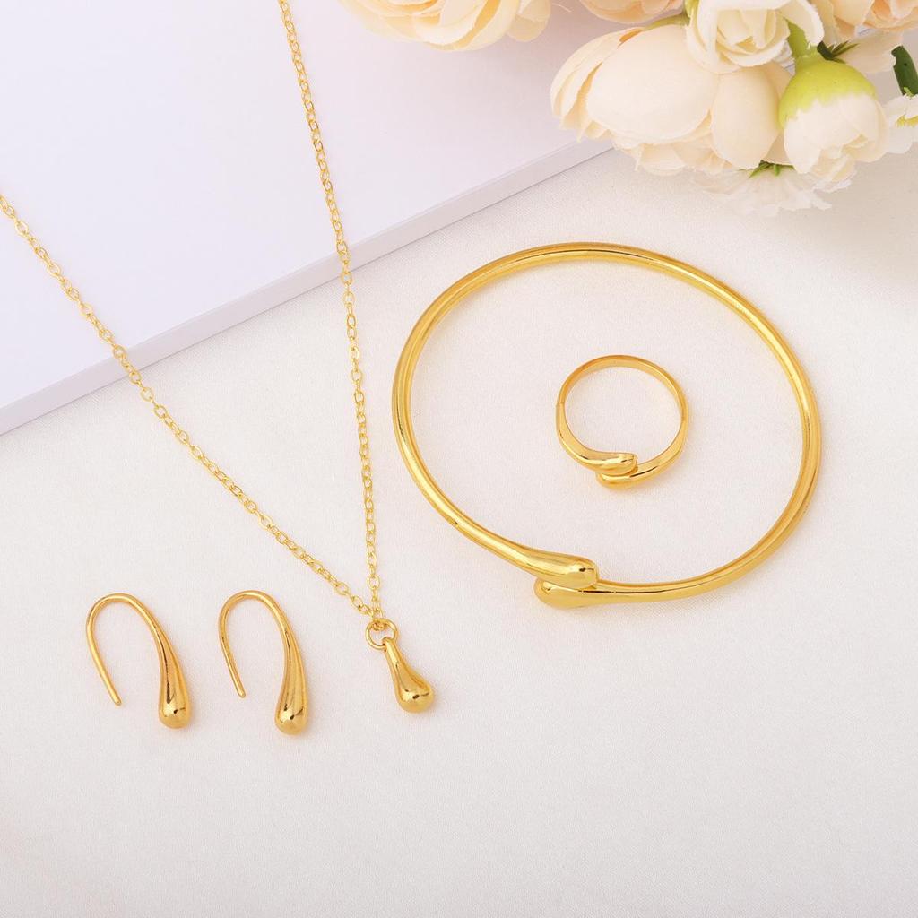 Angel's Tear Jewelry Set: Water Drop Pendant Necklace, Openable Bracelet, Earrings, and Ring - Four-Piece Collection