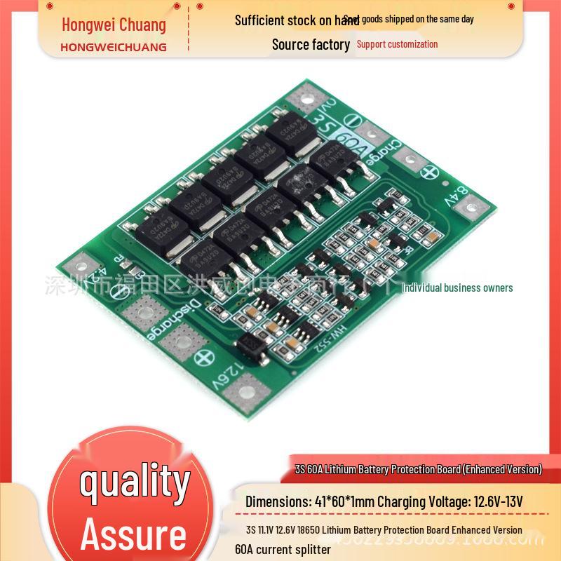 Enhanced 3S 18650 11.1V/12.6V Lithium Battery Protection Board, 60A Current, Separate Port