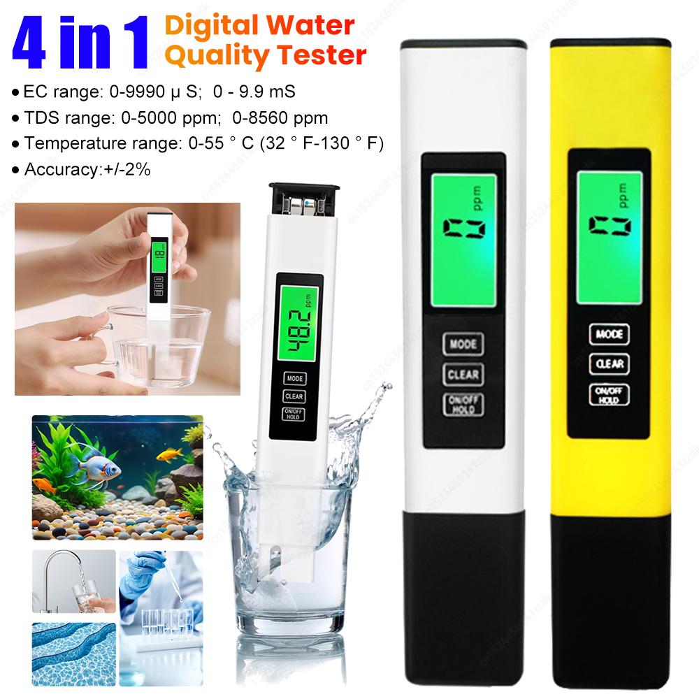 4 In 1 PH Meter TDS EC Meter With Backlight Digital Water Quality Monitor Tester for Aquarium Swimming Pool 0-9990PPM High Preci