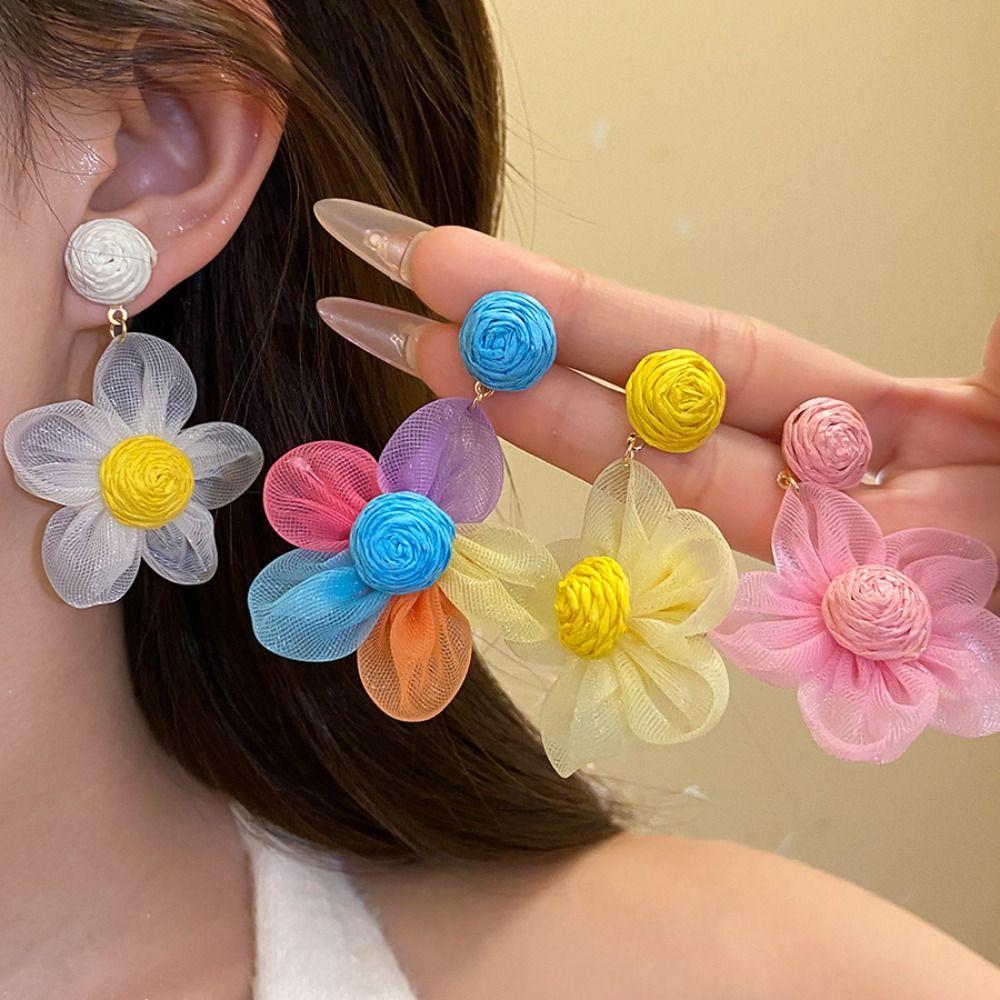 Sunflower Multi-colored Ear Accessories Raffia Flower Ear Drop Handmade Wood Drop Earrings Daily