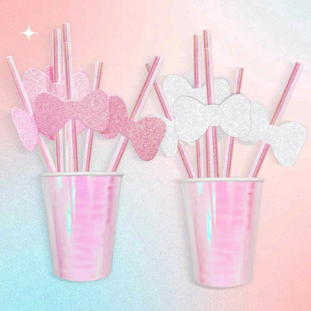 Biodegradable Glitter Bowknot Paper Straws for Cake & Drink Decorations