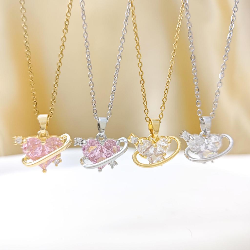 Luxury Pink Heart Pendant Necklace for Women - Fashionable Clavicle Chain Accessory