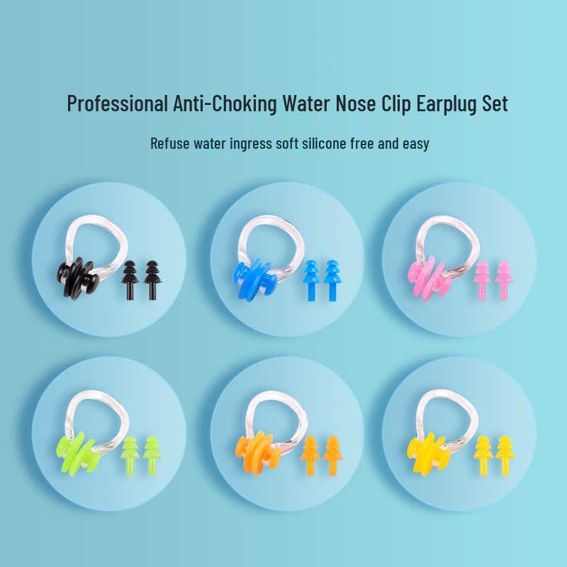 Silicone Earplugs and Nose Clip Set for Swimming - Waterproof Gear for Children and Adults