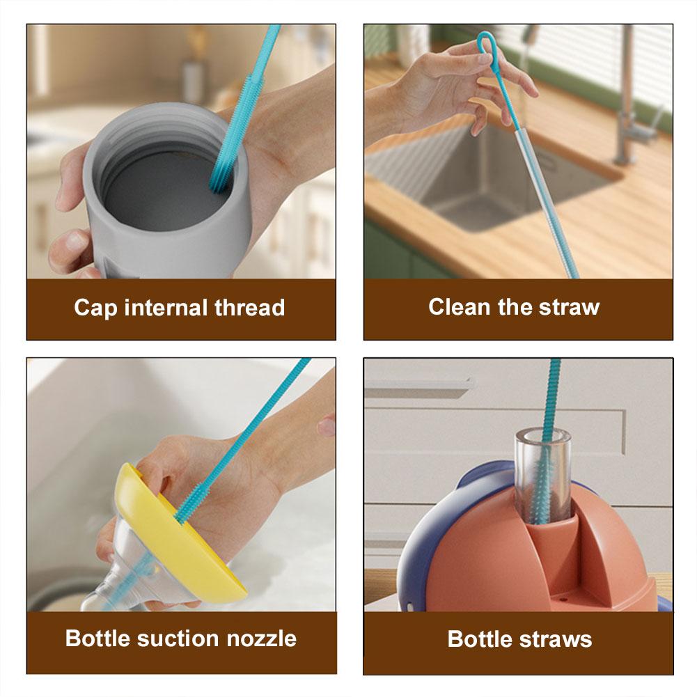 Equipped with dense spiral bristles, the extra long straw cleaner brush can reach deep inside to remove stubborn residues like milk stains and tea deposits. The soft silicone bristles are compatible with glass, metal, and silicone straws.