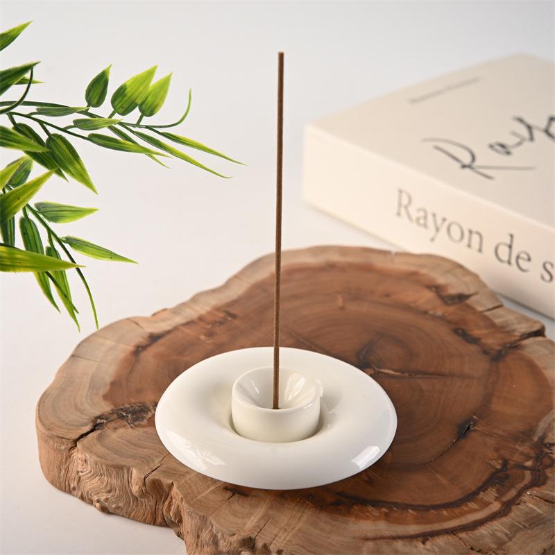 Minimalist White Geometric Ceramic Incense Holder: Portable Vertical Tray for Incense Sticks.