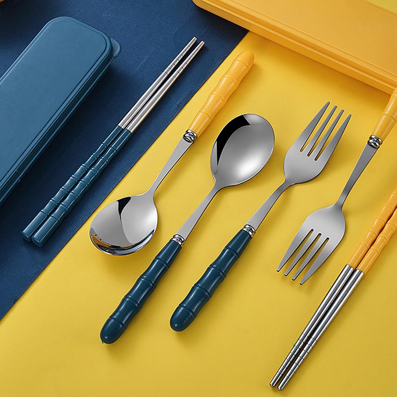New 3Pcs Chopsticks Spoons Forks Sets Of Stainless Steel Portable Tableware Reusable Travel Picnic Cutlery With Box