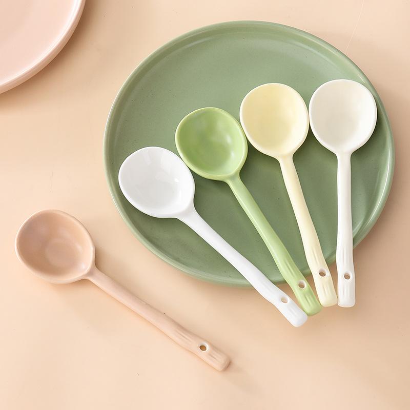 Nordic Style Ceramic Long Handle Spoon Morandi Creative Household High Value Internet Celebrity Spoon Dessert Spoon Soup Spoon