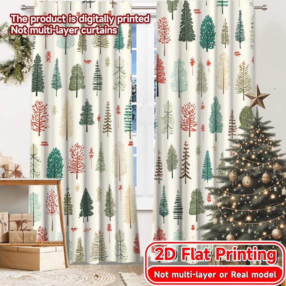 Set Of 2 Flat Printing Curtains Without Rod Christmas Tree Decor Holiday New Year Printed Prints Curtain Sheer Made Polyester