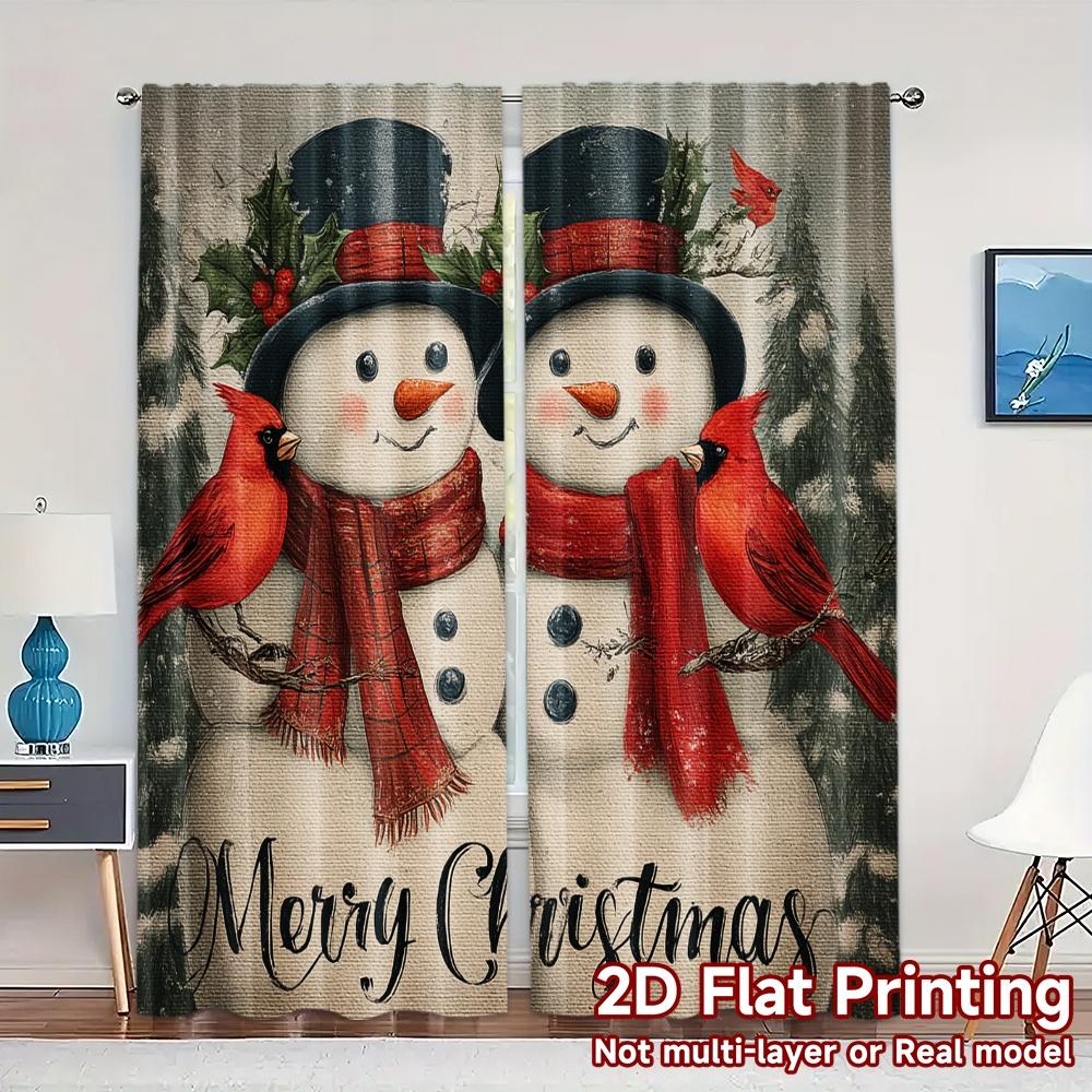 Set Of 2 Flat Printing Jit Curtains Without Rod Festive Snowmen Chic Yarn Versatile All Contemporary Made Polyester