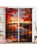 Plane Printing Curtains Digital Printed Autumn Sunset Maple Leaf Durable Polyester Fabric Without Rod Versatile Set Of 2 Made
