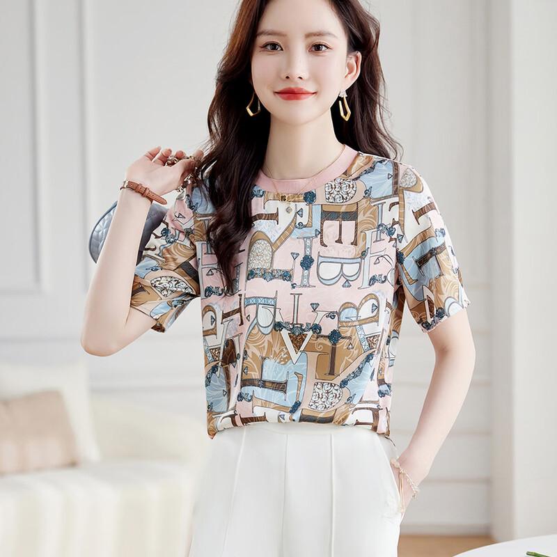 OOTIF Women's Printed Round Neck Short Sleeve T-Shirt