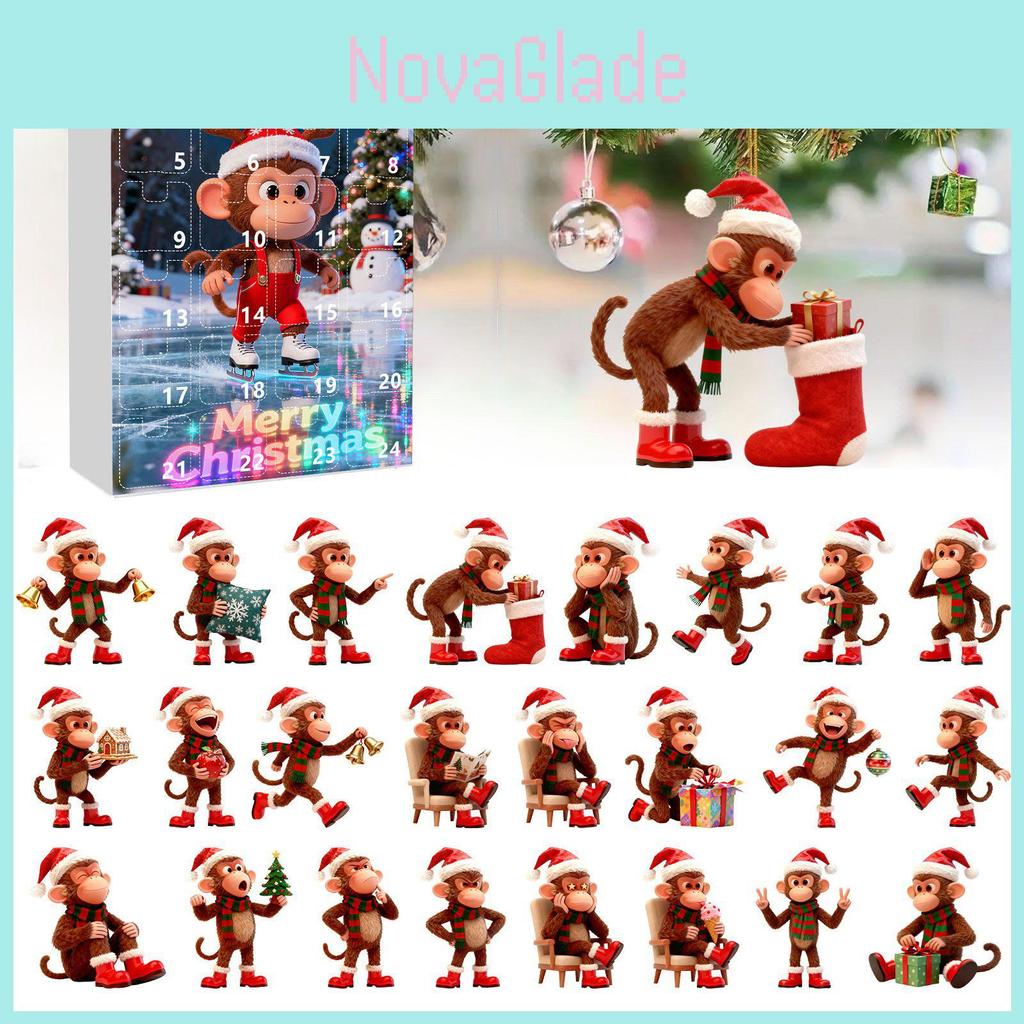 Christmas Countdown Blind Box With Monkey Christmas Tree Ornaments For Holiday Decor