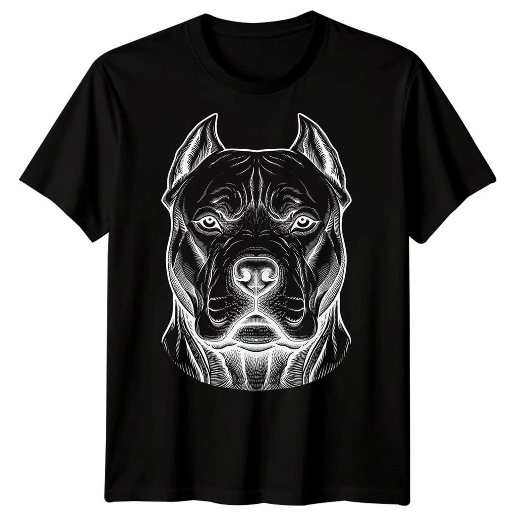 Pitbull Dog Animals Mens T-Shirt Engraving Style Graphic Tee