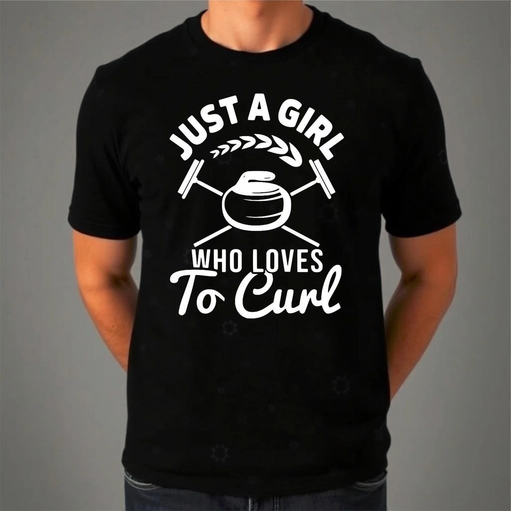 Just A Girl Who Loves To Curl T-Shirt, Curling Sports Fan Gift Graphic Tee Top