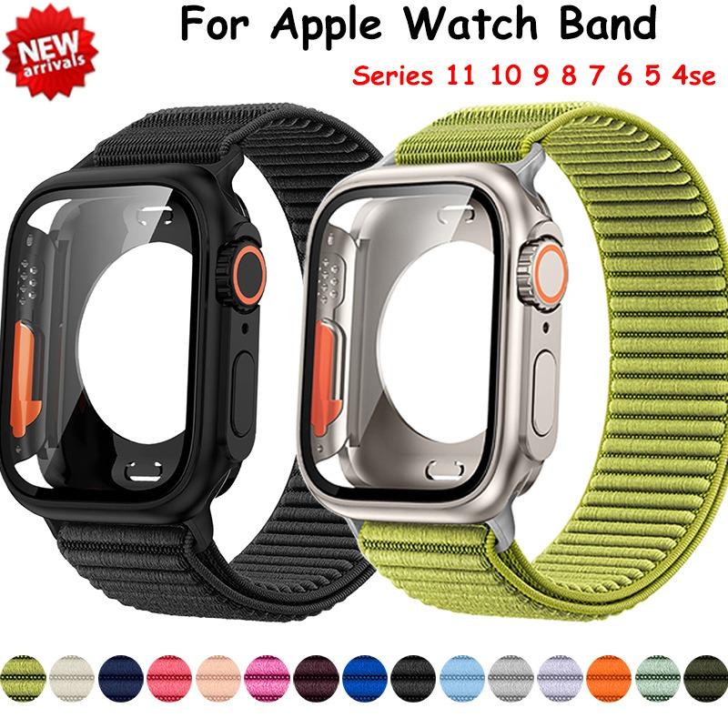 Nylon Strap+Case For Apple Watch Series11 10 46mm 9 8 7 41mm/45mm Glass+Full Cover Bumper For Iwatch 6 5 4SE 44mm 40mm Bracelet