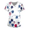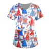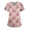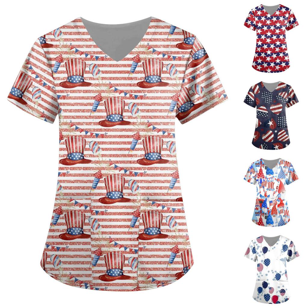 Women's Independence Day Print Short Sleeve V Neck Top Work Pocket Shirt
