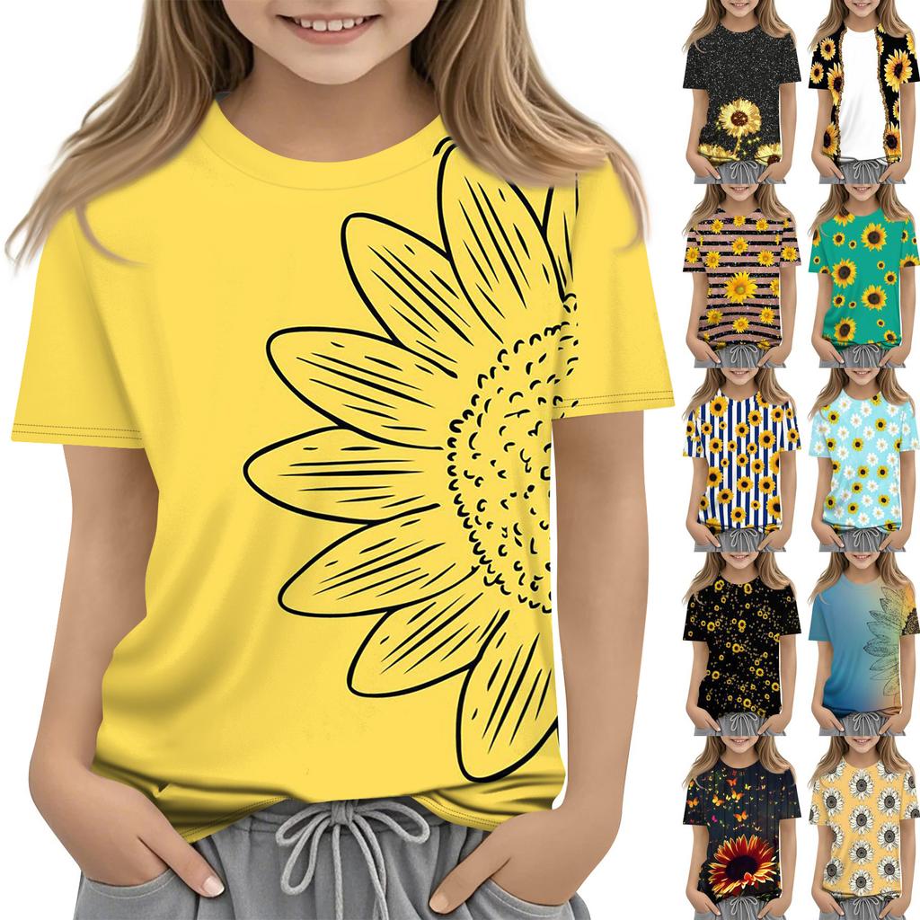 Children's Printed Round Neck Short Sleeved Casual T-shirt