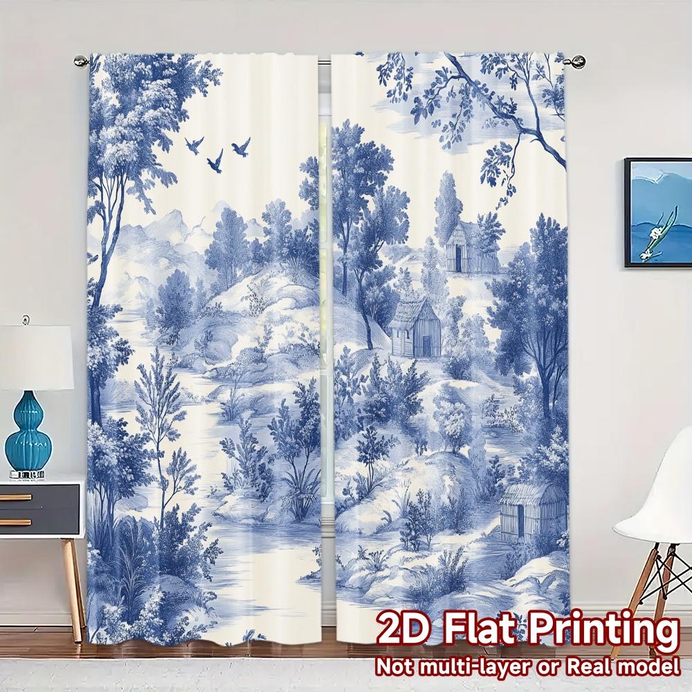 Set Of 2 Modern Curtains Blue Landscape Scene Fashionable Semi Decorations Home Decorative Curtain Light Filtering Made Polyester