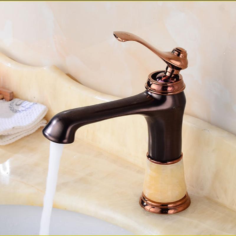 European Style Black Retro Hot and Cold Mixed Water Basin Faucet Copper Alloy Antique Topaz Wash Basin Faucet Bathtub Faucet
