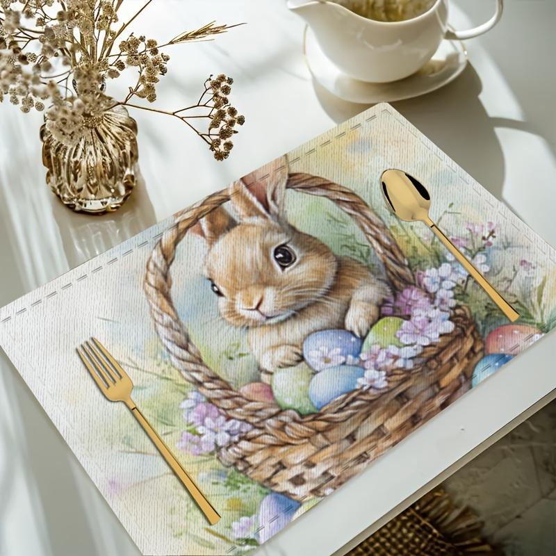 1PC A Cute Easter Bunny Placed In A Basket with Flowers and Eggs Placemat 30X45cm