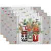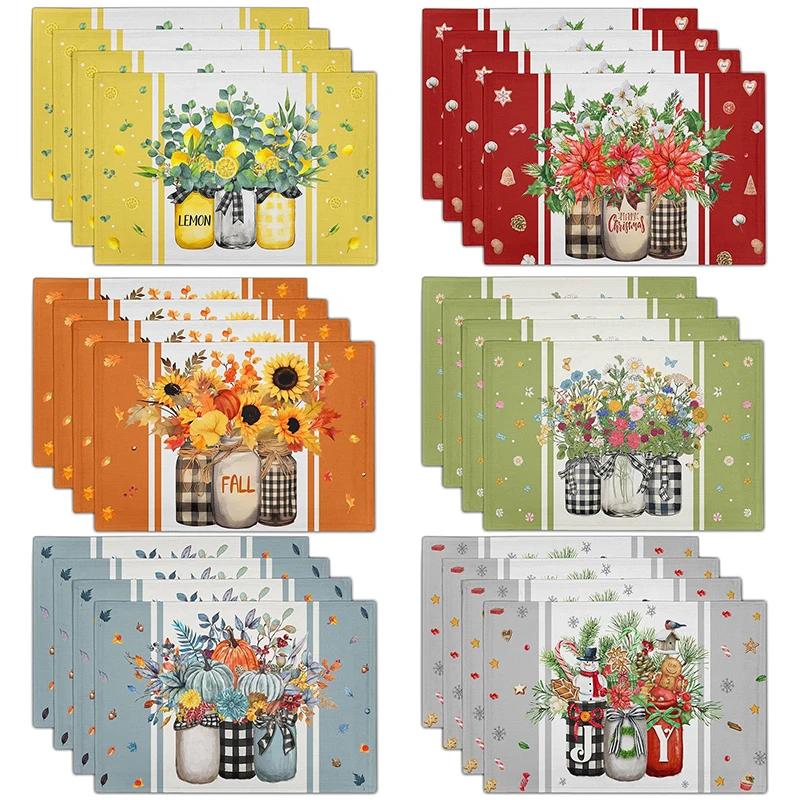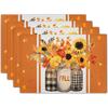 1PC Sunflower Placemats Linen Buffalo Check Plaid Autumn Leave Table Place Mat for Farmhouse Thanksgiving Kitchen Dining Decor