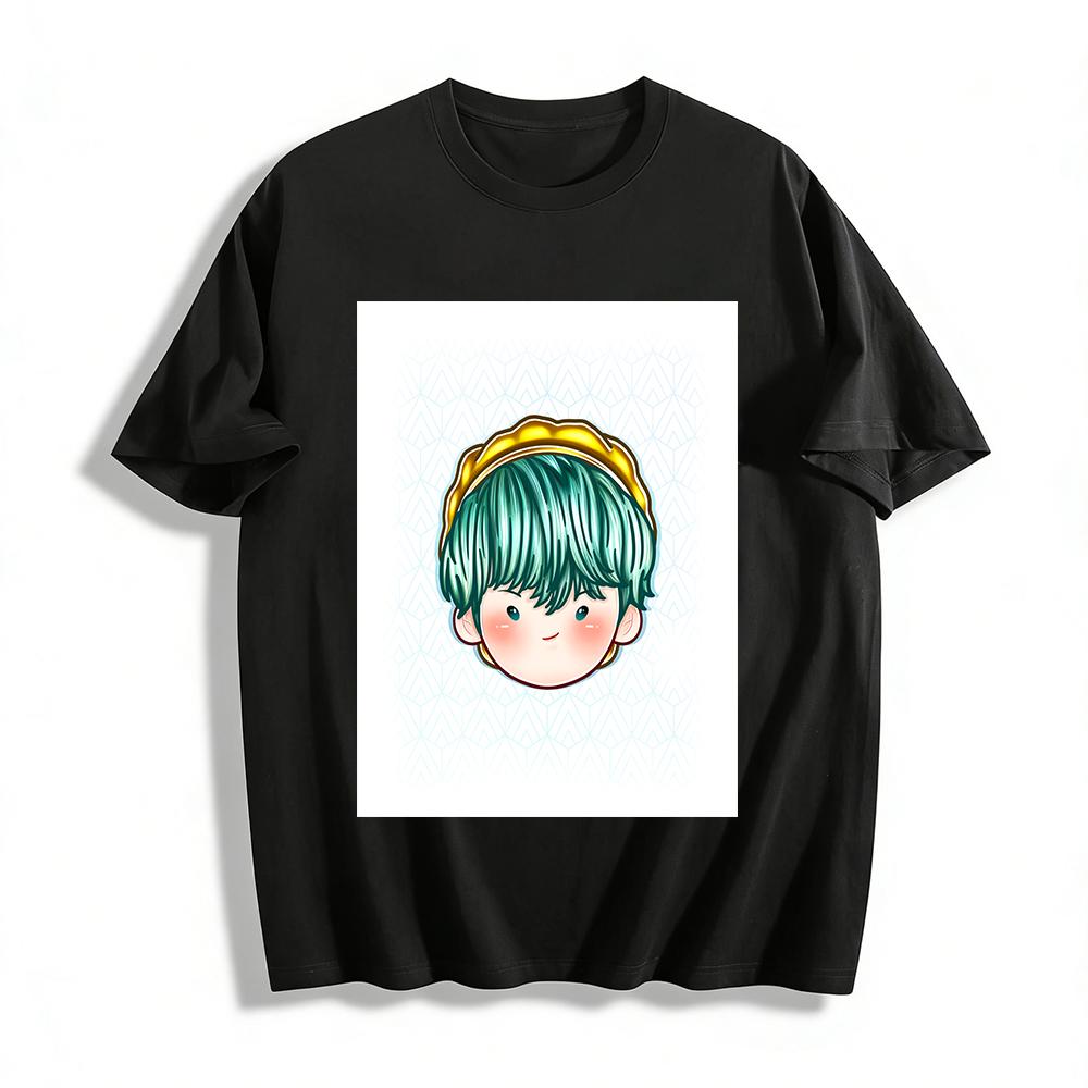 Cute Japanese Style Green-haired Boy Print T-shirt Casual Loose Breathable Unisex Daily Top Pure Cotton T-shirt