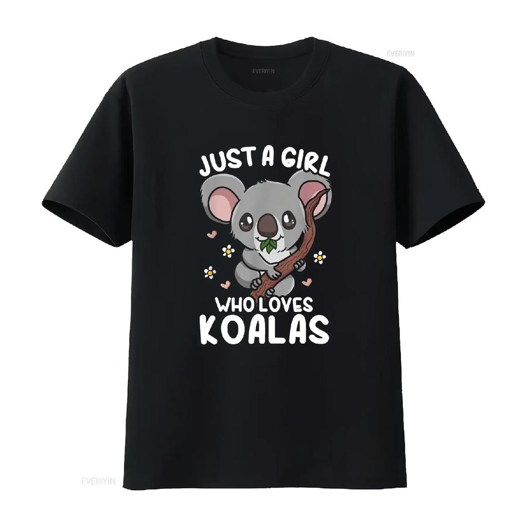Koala Just a Girl Who Loves Koalas T Shirt Vintage Washed Breathable Top For Everyday Wear Soft Graphic Casual Streetwear