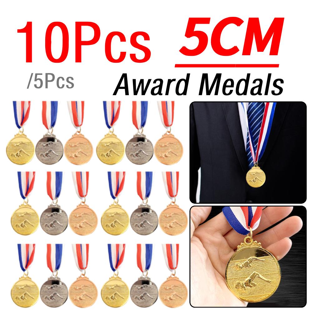 5/10Pcs Swimming Medal Metal Winner Medals with Neck Ribbon Gold Silver Bronze Medal 1st 2nd 3rd Prizes for Sports Competition