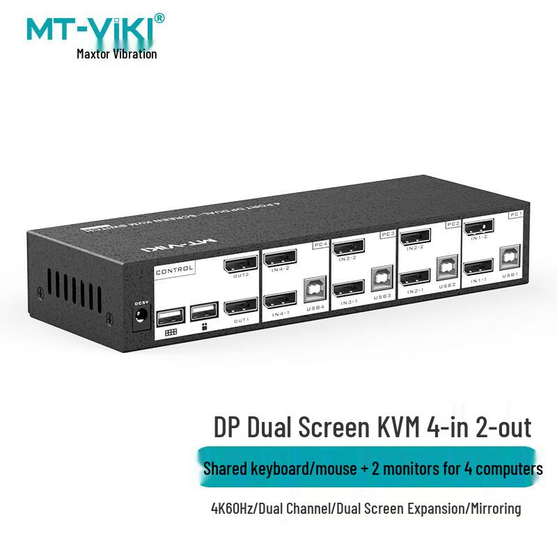 MT-Viki 4-Port Dual Monitor 4K DP KVM Switch