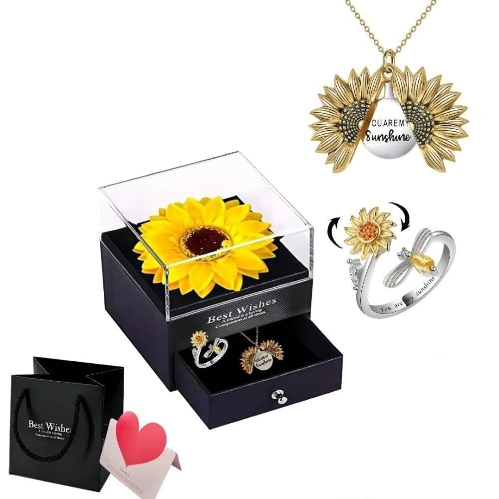 Hypoallergenic Titanium Steel Sunflower Gift Box Love Necklace Elegant Sunflower Pendant Birthday