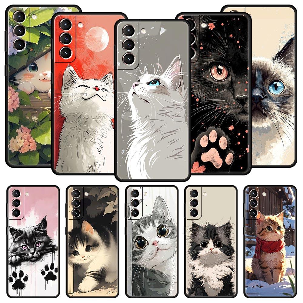 Daily Life of Cute Cats Phone Case For Samsung Galaxy S26 Ultra S25 Plus S24 FE S23 S22 5G S21 S20 Cover Black Soft