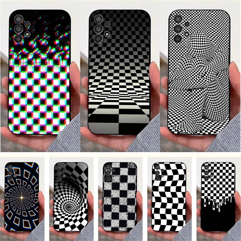 Checkered Chess Board Case For Samsung S22,S21,S9,S25,S24,S23,Ultra,FE,S20,S10,Plus,Lite,Soft Silicone Black