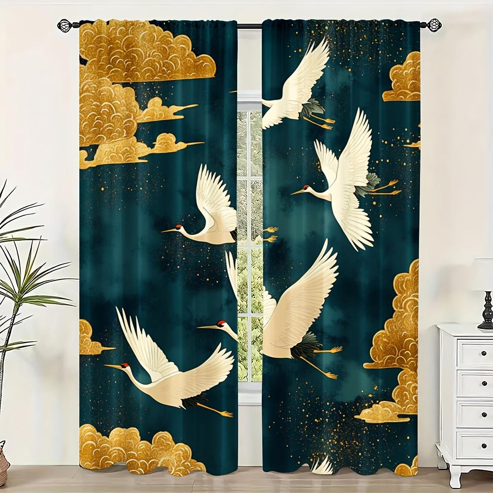 Crane Auspicious Cloud Print Curtains Polyester Fabric Suitable Bedroom Living Room Decoration Made Of Machine Washable Great Window Treatment