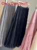 Pure Color Mesh Panel Long Skirt With Pleats For Casual Womens Fashion