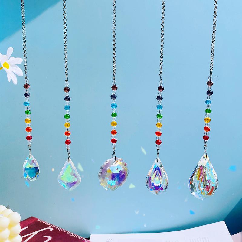 1Pc Colorful Crystal Sun Catcher Rainbow Maker with Hanging Chain for Home Decoration Thanksgiving Theme