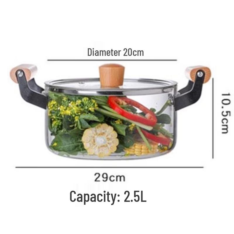ZISIZ Transparent Double-Handled Glass Cooking Pot