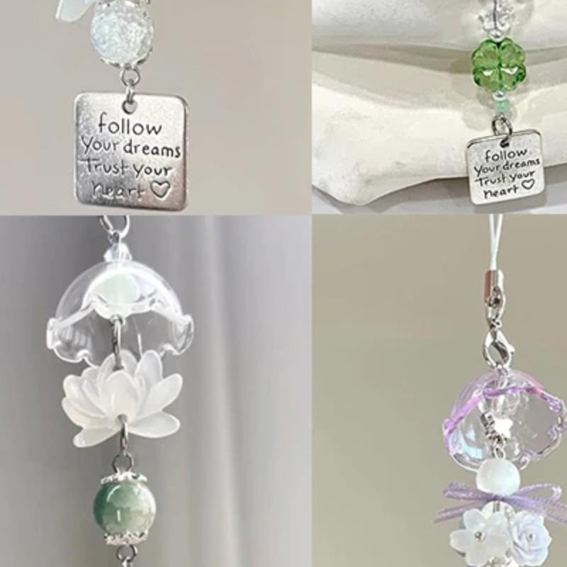 Transparent Keychain Cute Wind Chime Pendant Keyring Mobile Phone Lanyard Kawaii Bag Decorative Accessories Home Decorations