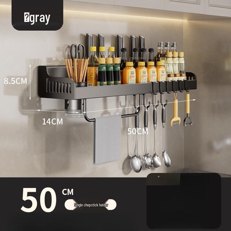 Cmaos No-Drill Wall-Mounted Kitchen Organizer with Knife & Spice Rack