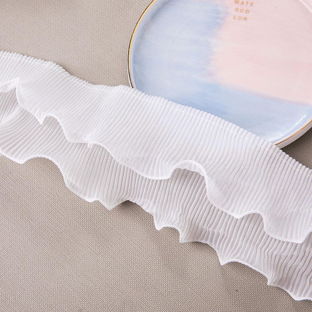 New Arrival 8.5cm 2-Layer Elastic Pleated Chiffon Lace White/Black Ruffle Edging Trim for Doll Clothing Decor DIY Sewing Supply