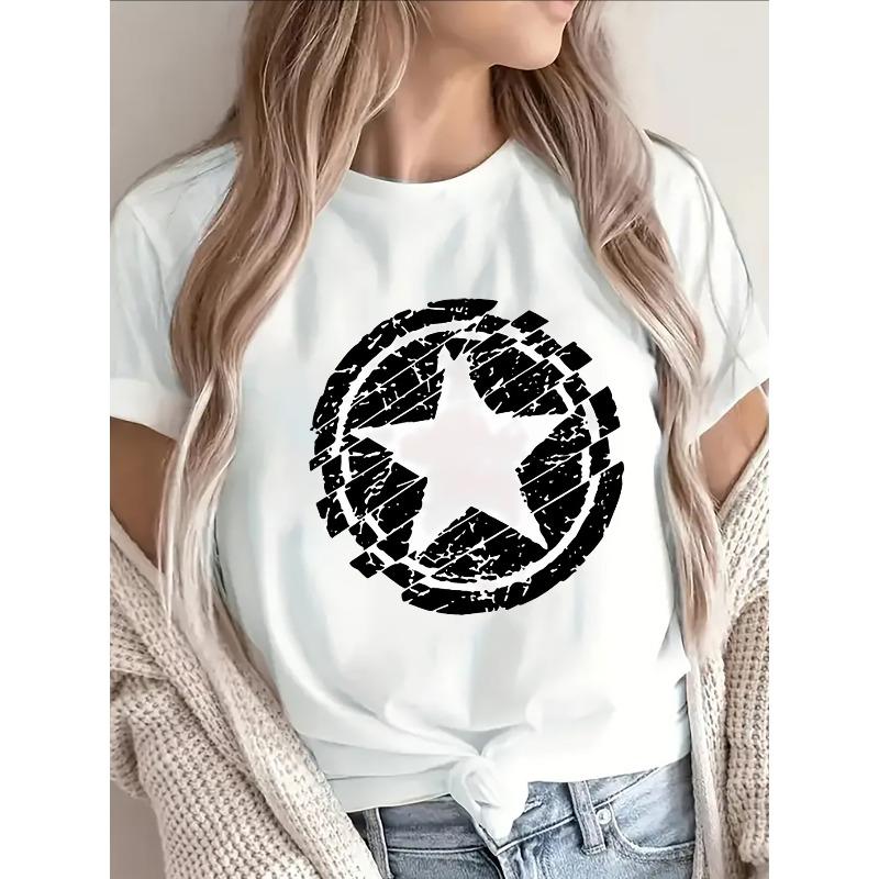 Lightweight And Durable T-Shirt with Short Sleeves And a Star Pattern, Perfect for Casual Outings At Home, In Restaurants, Or Outdoors